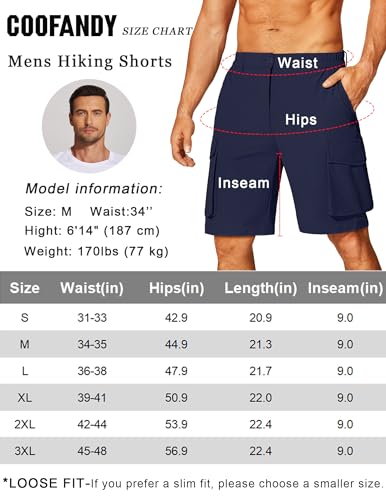 COOFANDY Mens Hiking Cargo Shorts Quick Dry Work Shorts Big and Tall Lightweight Walking Shorts for Fishing Outdoor Blue