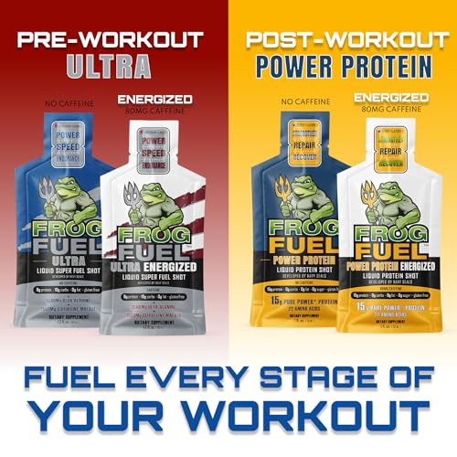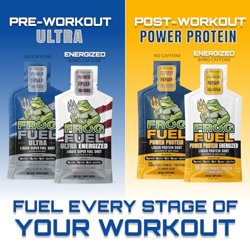 Frog Fuel Ultra Energized Pre Workout Shot, 80mg Caffeine, 1500mg Beta Alanine, Electrolytes 8g Protein Nano-Hydrolyzed Grass Fed Collagen, 10g Carbs, Gluten Free, Berry, 1.2 oz Packets, 24 Pack