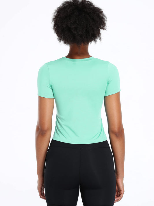 CADMUS Running Crop Tops Women Short Sleeve Racerback Dry Fit Workout Shirts 3 Packs, Purple, Light Green, Orange, X-Large