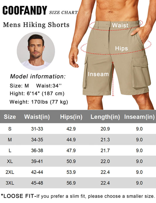 COOFANDY Mens Hiking Shorts Quick Dry Cargo Shorts Lightweight Work Shorts Big and Tall Summer Shorts for Fishing Khaki