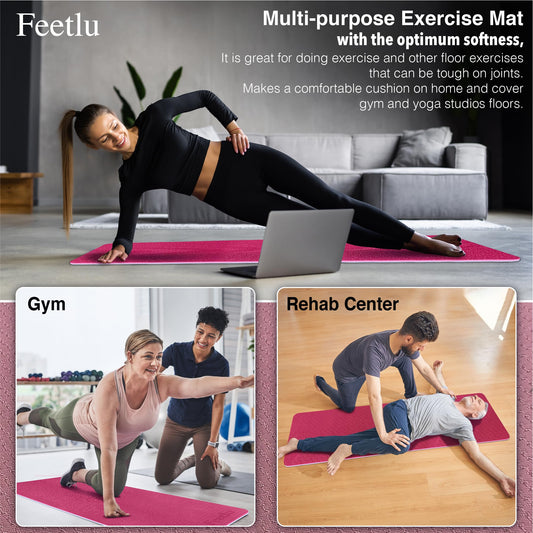 Feetlu Yoga Mat Thick with Strap, 2/5 Inch (10MM) - Extra Thick Yoga Mat Non Slip Workout Mat Double-Sided, Eco POE Yoga Mats for Women Men, Workout Mat for Yoga, Pilates, and Floor Exercises(PK/GY)