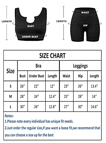 niyokki Ribbed Seamless Booty Shorts Workout sets for Women Stretchy Sport Bra Yoga Leggings Matching Workout Set,black, S
